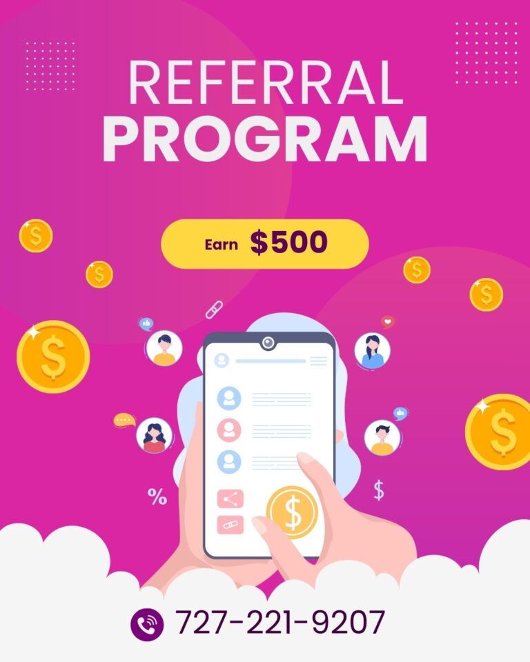 The referral reward is a flat $500.00 cash payment per qualifying project.